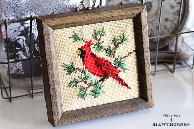 I LOVE the needlepoint Cardinal!!! It's perfect for our home as we call our casa Cardinal Hill!