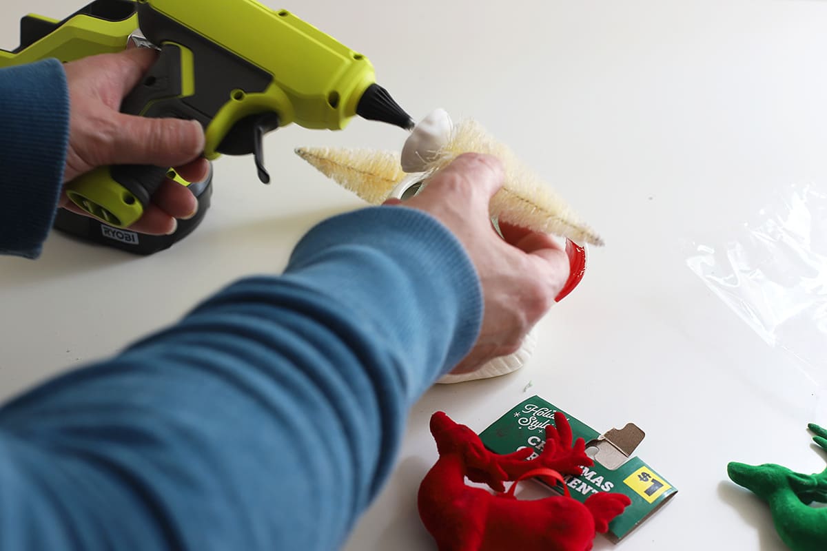 The idea is to make this so that you can always take out the items if you want to revert it back to a cup. I'm a big proponent of not permanently altering vintage Christmas decor if I can help it.