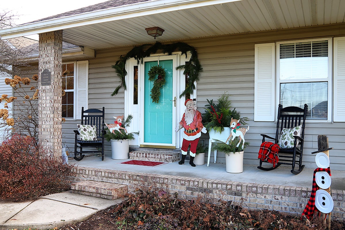 Oh my gosh...your porch is fabulous. It reminds us of Christmas past with the adorable deer and vintage Santa. Beautiful and inviting! Merry Christmas!