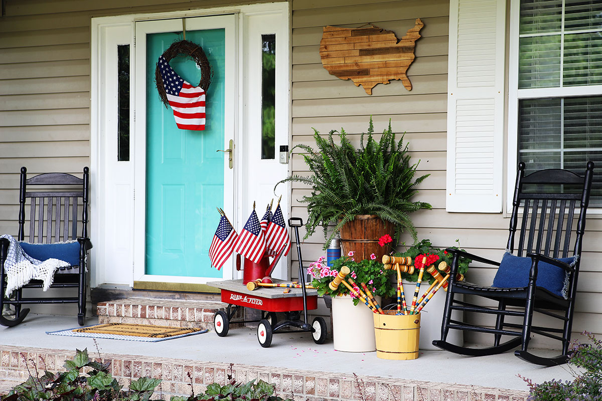 Really, you can't go wrong with grabbing anything you can find in the colors of red, white or blue and throwing it on the porch.