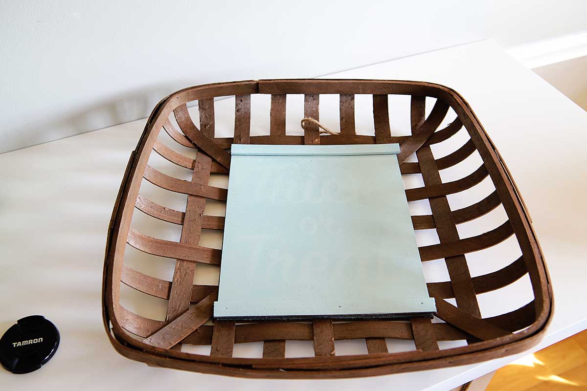 I could have just ripped the sign off the basket, but it was stapled in there pretty good and I was afraid I'd crack the wood on the basket.
