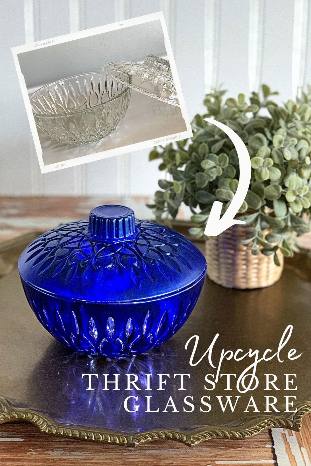 One of my favorite things to upcycle is glass pieces from the thrift store.
