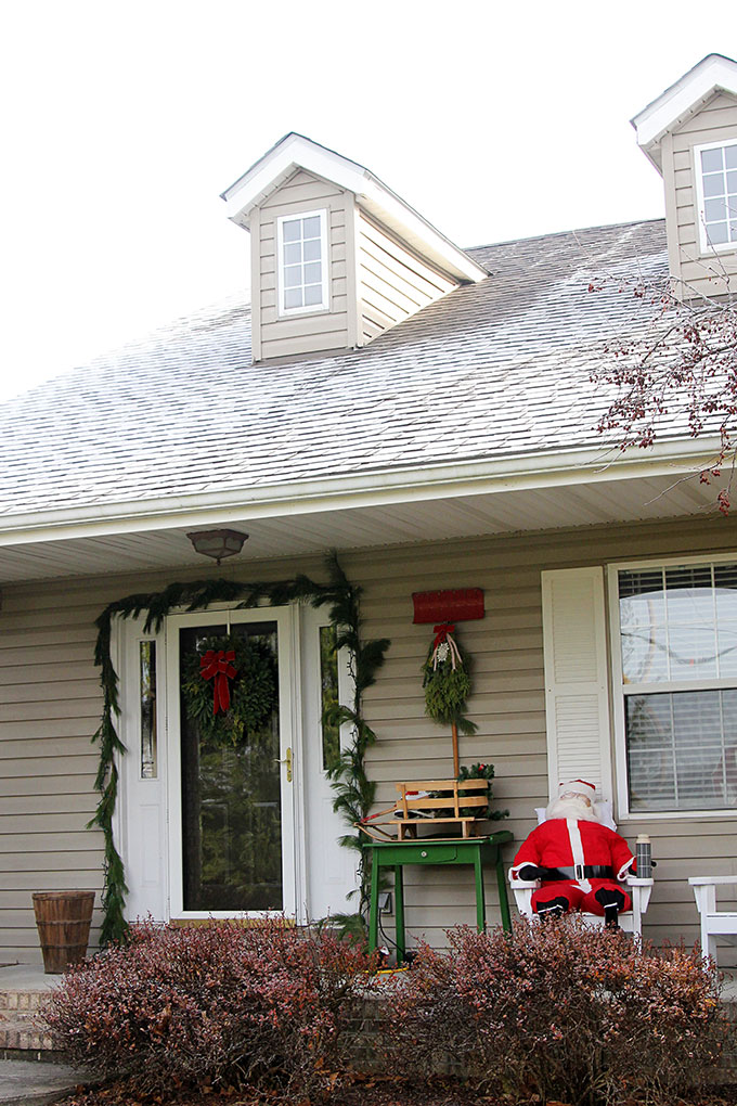 Your front porch is awesome starting with Santa enjoying his cup of hot chocolate, but it was that awesome red shovel decorated with greens that caught my eye during the link up. Pinned to share 🙂