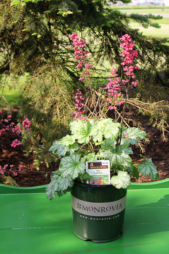 - You should ideally have one plant that is taller (my coral bells), at least one plant to spill over the edges a bit (my lobelia) and one plant to fill in the empty space (my calibrachoa).