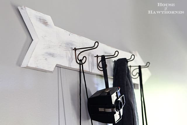 I love the changes you've made! Now when guests enter your house, they get a feel for your style. Your arrow coat....er camera rack is pretty darn impressive, Pam, because I know it involved power tools. And you've found the perfect spot for your mod thrifted chair!! I know just what you mean about the yellow walls because I lived with them for a decade. White is a great color to show off your collections, too! Love it all!!