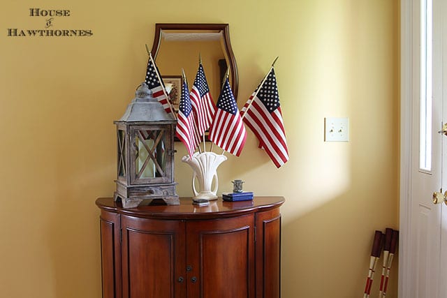 So I kicked my formal entryway table to the curb (not really, it's in the dining room) and I brought my vintage Versa Fold n Roll Table down from my craft room/office to replace it (the ugly BEFORE photos are coming up in a bit).