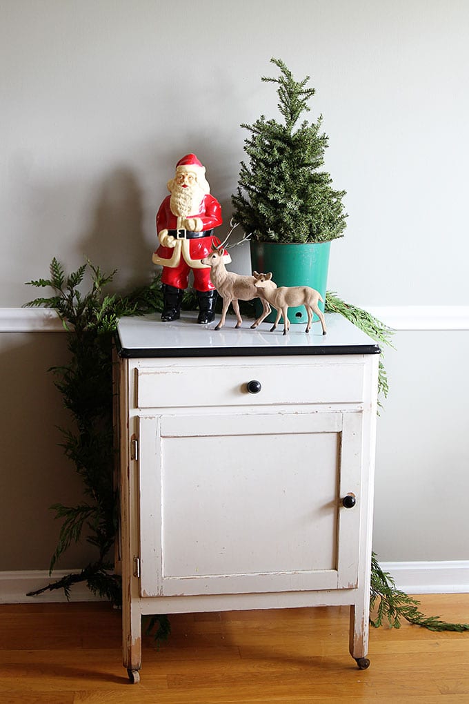 The Santa pitcher was also a thrift store find. The paint is a little chippy on it, but that just gives it character.
