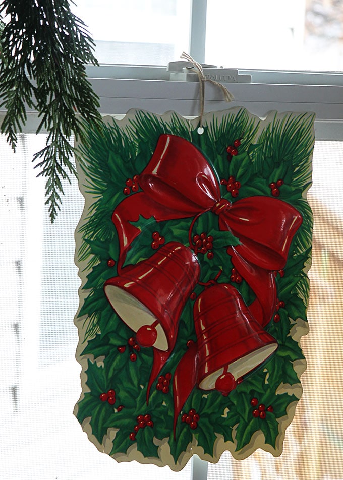 Last year I had curtains in here that I had made from an old vintage Christmas tablecloth that had seen better days.