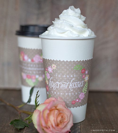 Free Printable Valentine Coffee Cup Wrappers/Holders/Sleeves from Skip To My Lou (made by Lia Griffith who is just amazeballs with anything paper) - you are able to personalize them with your own names!!!