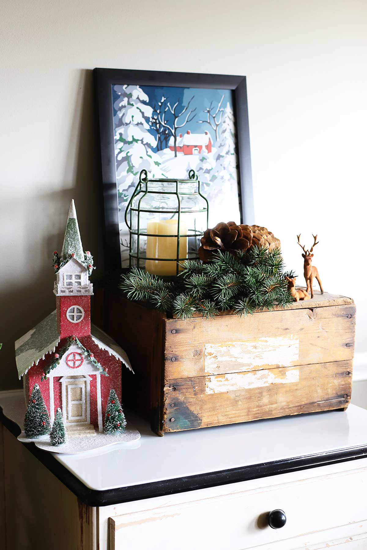 Next to the tree, I added some of my vintage Christmas decor to the hutch.