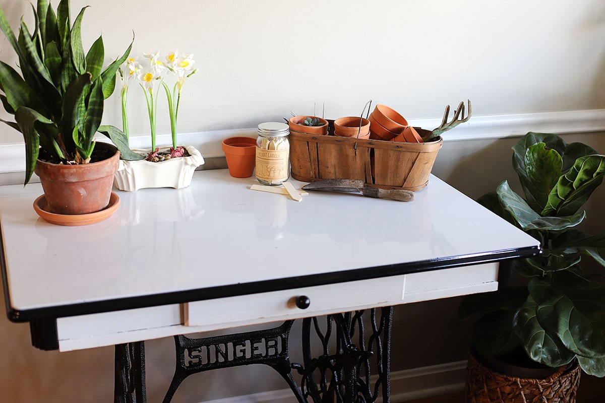 I wanted to marry this tabletop with a vintage Singer sewing machine base I already had in my garage.